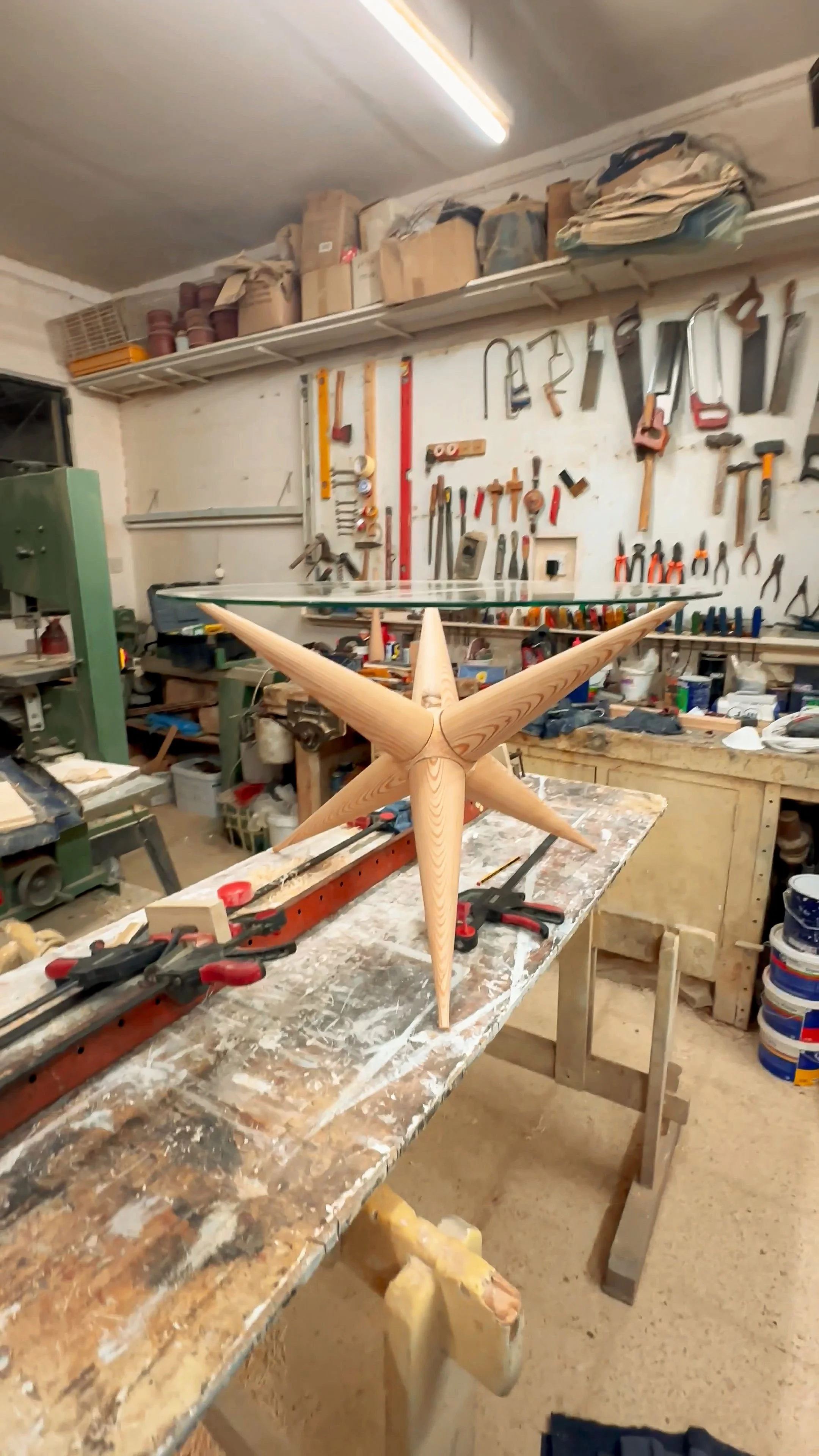 A handcrafted wooden coffee table features a three-leg base made from solid timber, designed to support a clear glass top. This glass top coffee table is perfect for contemporary living rooms or minimalist interiors.